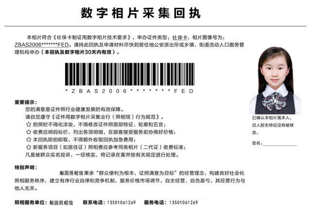 廣東省內(nèi)社會(huì)保險(xiǎn)所用的電子照版必須是公安部門指定的、且擁有第二代身份證拍照資質(zhì)的照相館進(jìn)行拍攝及聯(lián)網(wǎng)數(shù)字相片采集,并且所拍照片嚴(yán)格按照第二代身份證的規(guī)格進(jìn)行拍照方可有效。