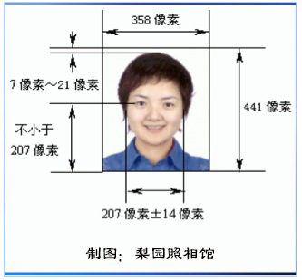 3. 電子版照片尺寸為標準1寸,且為26mm(寬)*32mm(高),臉部寬度(兩耳根之間)為15+1mm;