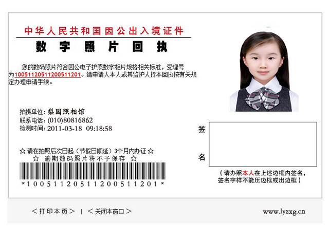 梨園照相館,是專業拍攝出入境相片、身份證相片、加拿大楓葉卡的專業照相館。為配合全市電子護照拍攝,自2011年電子護照推行以來,本店成功授權為北京市因公數字相片的指定拍攝單位,完全具備因公電子護照數字相片采集資質。按照外交部要求實行人員培訓、設備成流程更新,采集軟件安裝調試完成, 與外交部平臺聯網對接,因實行公務出境電子護照相片拍攝/上傳一次性完成,本店能拿到因公回執及帶有20位條碼照片1版,并提供拷貝回執及條形碼電子版相片。